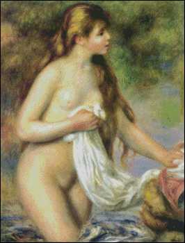 Based on the artwork of Pierre-Auguste Renoir 14 ct 13 5/8" x 17 7/8" 18 ct 10 1/2" x 13 7/8" (Recommended) Stitch count 191w x 251h 82 colors All patterns sold as PDF files that are available for instant download after purchase